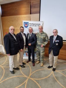 Vzlt i.R. Hamun, Frau Hofrätin Brigitte Ribisch Bürgermeisterin von Laa/Thaya, Obstlt Sommer, Vzlt i.R. Roblicka, Thomas Appl (Obmann des Bezirksverbands des Österreichischen Kameradschaftsbundes (ÖKB) Laa/Thaya und Mitglieder der VÖP)