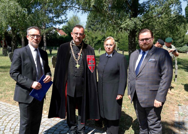 Mattersburg – Am 21. Juni fand am Soldatenfriedhof Mattersburg eine feierliche Gedenkveranstaltung zum 80. Jahrestag des Endes des Zweiten Weltkriegs statt. Veranstaltet wurde die Feier von der Landesgruppe Burgenland der Vereinigung Österreichischer Peacekeeper (VÖP) in Zusammenarbeit mit dem Österreichischen Schwarzen Kreuz (ÖSK). Die Organisation lag bei der ÖSK-Landesstelle Burgenland. Zahlreiche Gäste aus Österreich und Ungarn nahmen daran teil.
